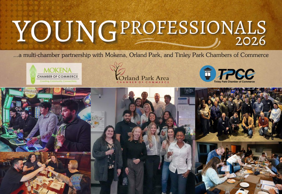 The Young Professionals are a group of motivated individuals who want to expand their network and connect with peers. The group meets on the fourth Tuesday of each month at various member locations throughout Mokena, Orland Park, and Tinley Park. These meetings offer a supportive space for professionals early in their careers to build connections and grow together.